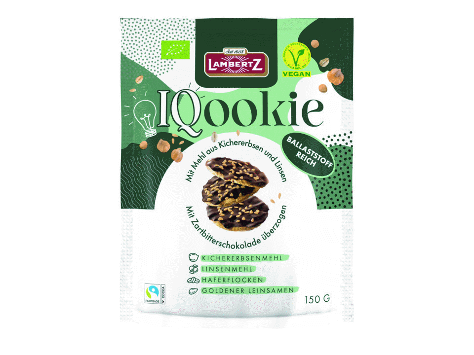 Das vegane Gebäck, natürlich in Bio Qualität, setzt auf einen hohen Ballaststoffanteil und eine natürliche Proteinquelle aus Hülsenfrüchten. Denn die IQookies werden mit innovativen Kichererbsen- und Linsenmehl gebacken. Abschließend werden die IQookies mit fein-herber Zartbitter-Schokolade, natürlich aus Fairtrade-Anbau, veredelt und mit nussigem Sesamsamen getoppt. Die Kombination dieser Zutaten macht die IQookies zu einem einzigartigen Produkt, das nicht nur den Gaumen verwöhnt, sondern auch nährstoffreich ist und eine clevere Alternative zu herkömmlichen Keksen bietet. So überzeugen die IQookies Gebäck-Liebhaber, die gerne bewusst genießen, aber auf nichts verzichten möchten – schon gar nicht auf den leckeren Geschmack.