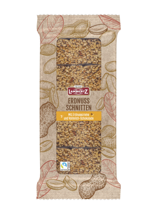Alles Peanuts! Das beliebte Lambertz Kleinkuchen-Sortiment, bestehend aus sechs köstlichen Produkten wie Mandelhörnchen, Nussecken oder Kokosmakronen, bekommt Zuwachs mit den neuen Erdnuss Schnitten. Feiner Mürbeteigboden wird mit aromatischer Erdnusscreme bestrichen und mit gehackten Erdnussstücken bestreut. Anschließend wird die knackige Schnitte noch in ein Bad aus Vollmilch Schokolade getunkt. Erdnüsse sind im Trend – genauso wie die moderne Interpretation der allseits beliebten Nuss Ecken. Die Lambertz Erdnuss Schnitten eignen sich perfekt als Snack zwischendurch.