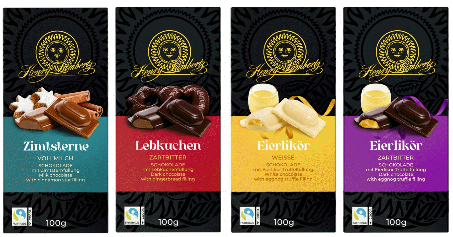 Beliebt bei Alt und Jung: Lebkuchen, Zimtsterne und Eierlikör zählen zu den absoluten Lieblingen in der Herbstzeit. Mit den neuen Tafel-Schokoladen bietet Henry Lambertz die beliebten Klassiker in 4 neuen Varianten an. Eine wunderbar würzige Lebkuchenfüllung, umhüllt von feinherber Zartbitter-Schokolade, fein-nussiger Zimtsternfüllung mit einem Schokoladenmantel aus zartschmelzender Vollmilch-Schokolade oder mit aromatischer Eierlikör-Trüffelfüllung in den Varianten Zartbitter oder Weisser Schokolade. Das außergewöhnliche Geschmackserlebnis lädt zu einer kleinen Auszeit im Alltag ein, zum Teilen mit den Liebsten oder als kleines Mitbringsel.