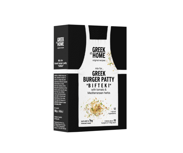 Make your “BIFTEKI” heartier and fluffier with the GREEK at HOME burger patty mix, which perfectly combines tomato with Mediterranean herbs and spices to give a rich and delicious flavour to every bite. Just add to minced meat, knead well and shape burgers the Greek way!
